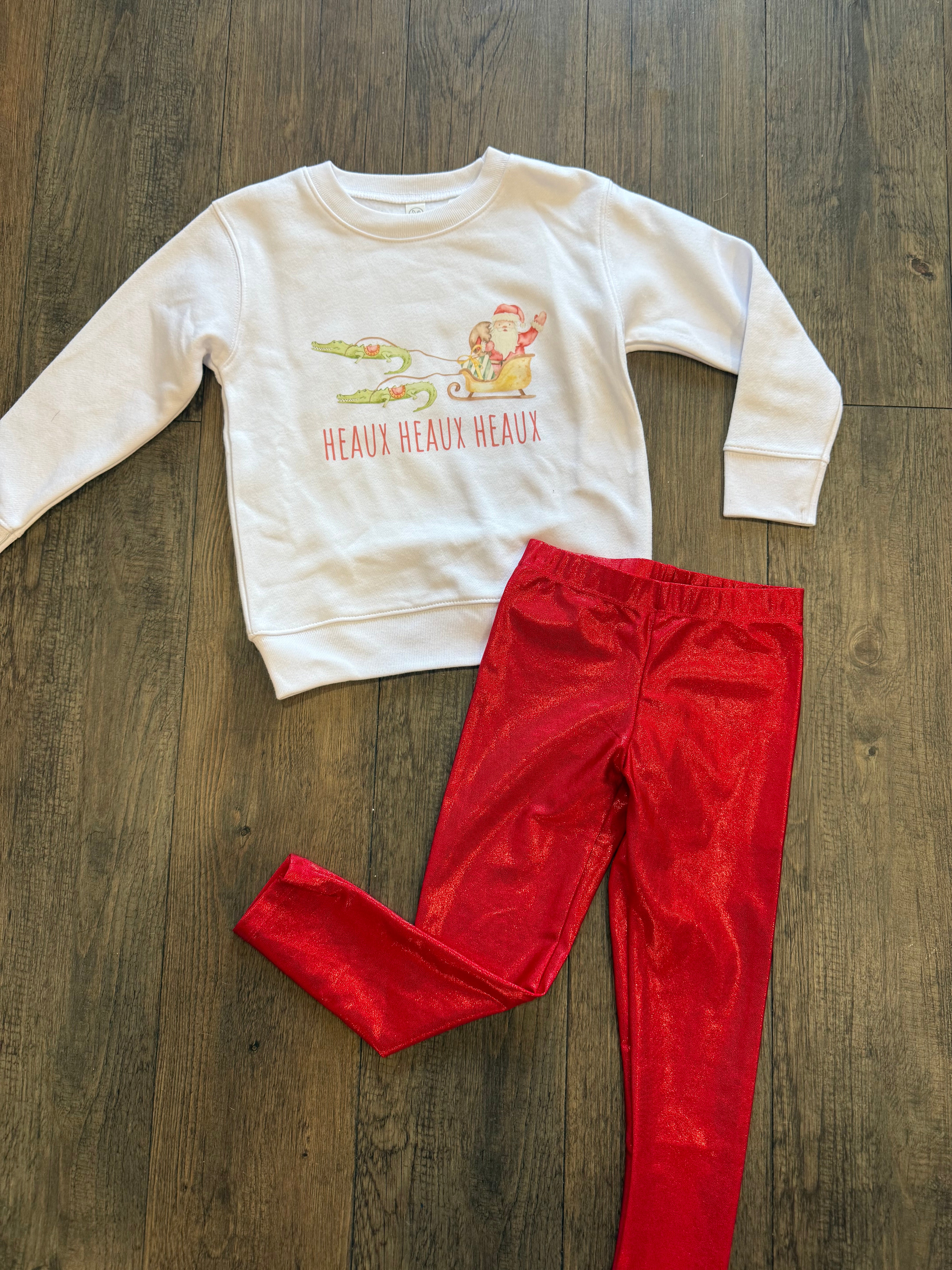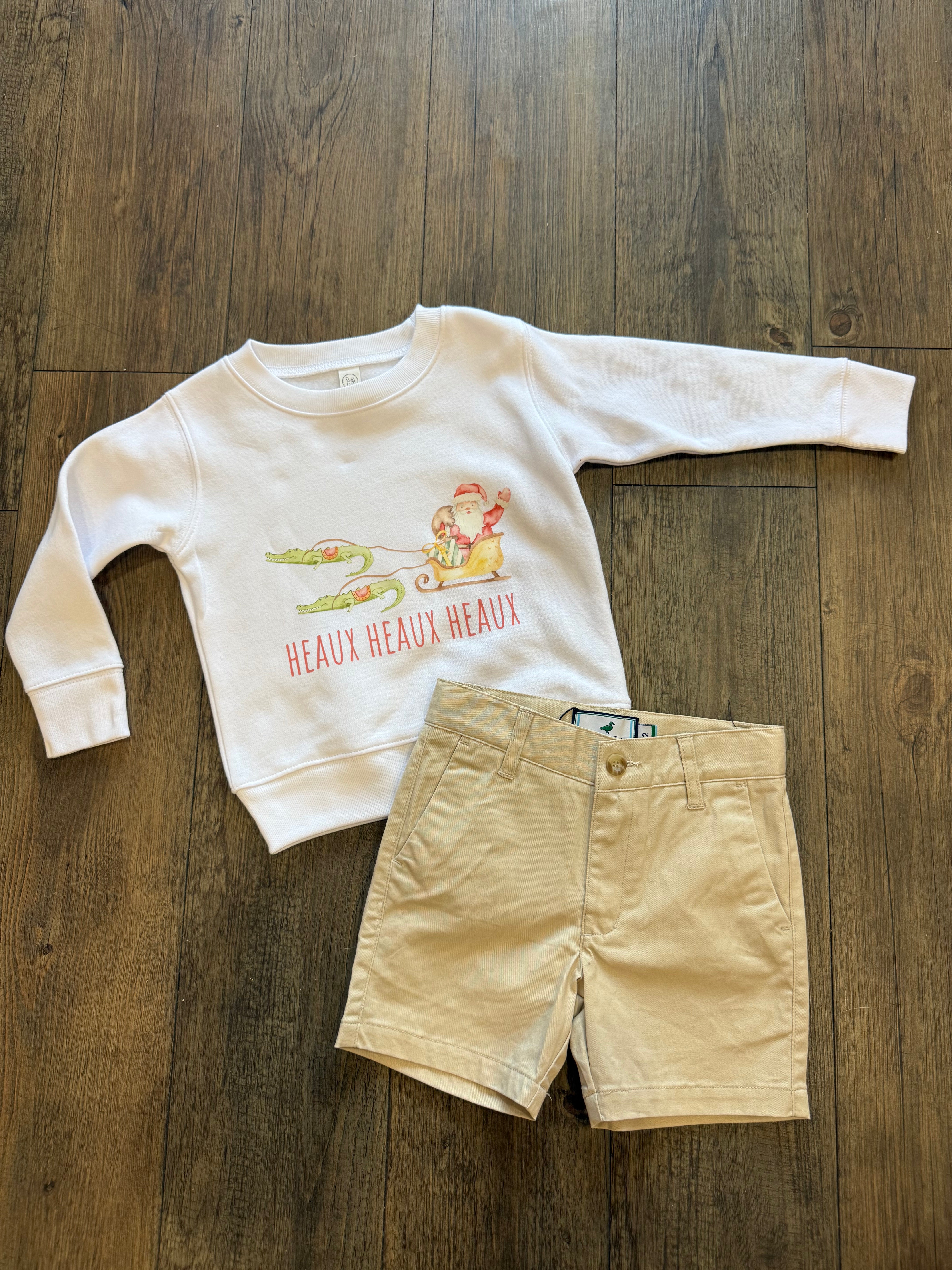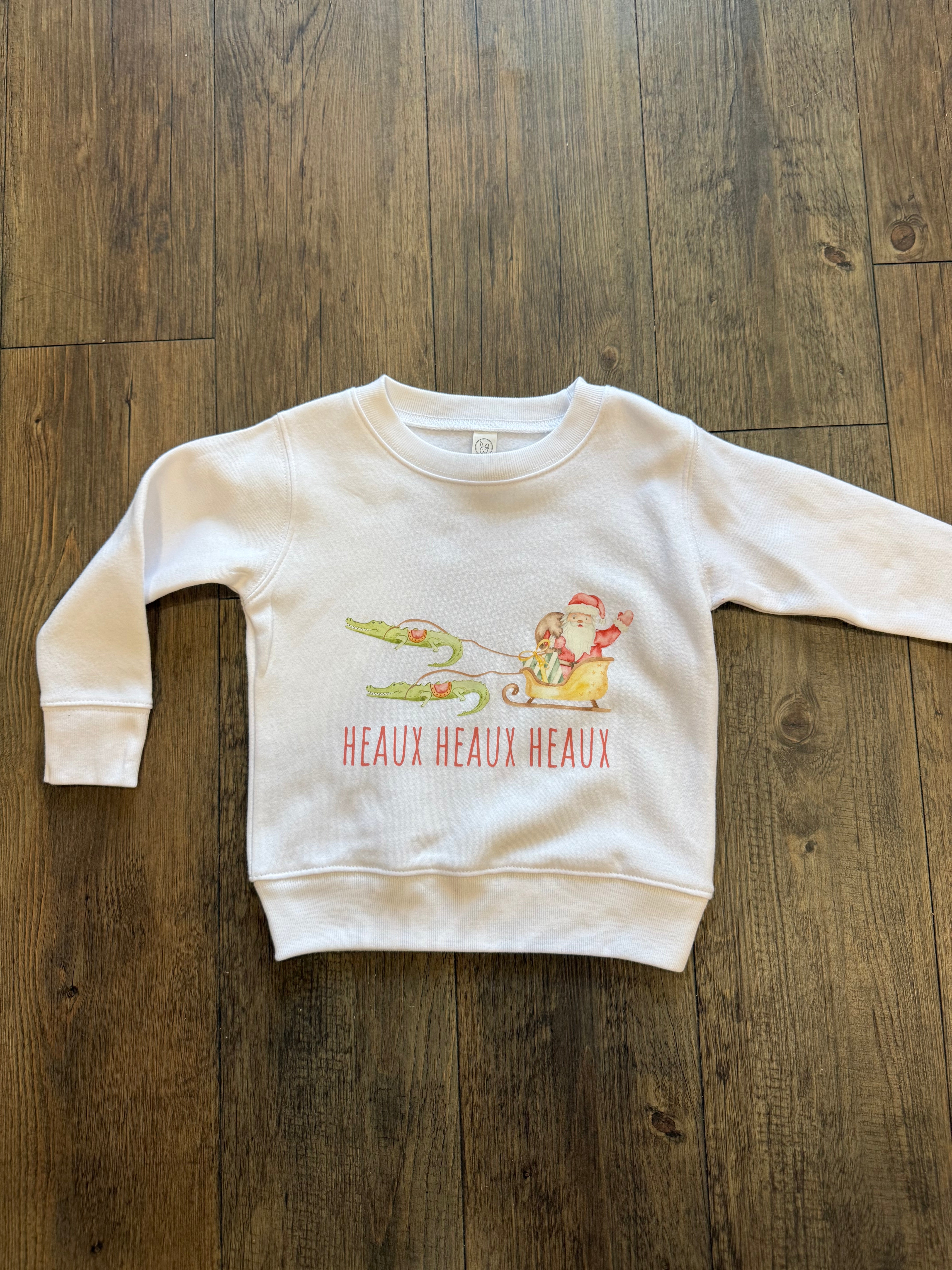 Introducing the Kid’s Heaux Heaux Sweatshirt—a white, unisex crewneck built for comfort and ready for holiday humor. This eye-catching design features a Cajun Santa being pulled by his alligators, bringing a playful twist to the season.