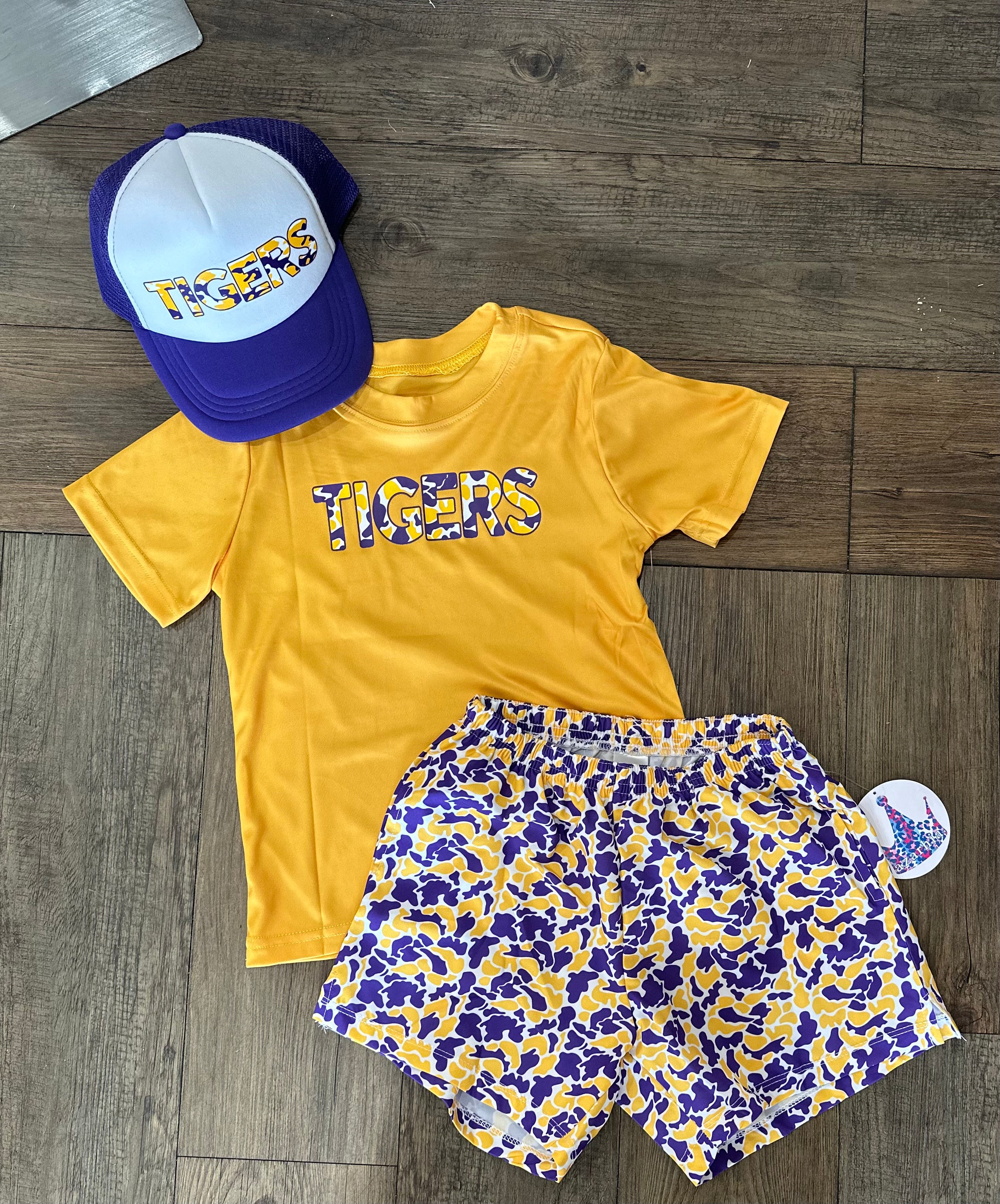Meet the Tigers Camo Gold Dri-Fit Gameday Shirt — a moisture-wicking, kid-friendly tee designed for young LSU fans. Perfect for any LSU event, practice, or everyday gameday style.