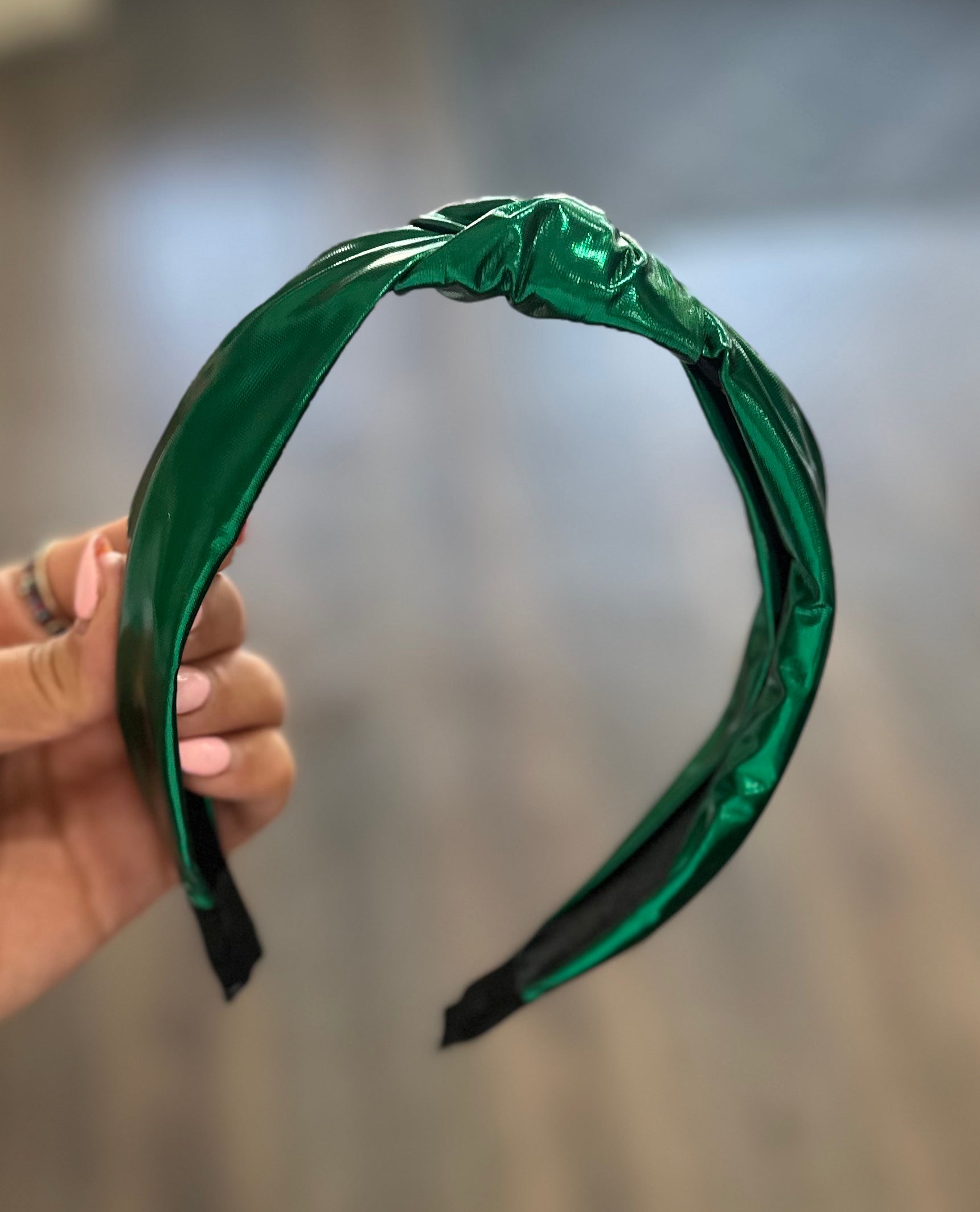 The Metallic Top Knot Headband is a shiny, trendy accessory designed to elevate your gameday fit or casual everyday look. Its standout knot detail provides a stylish focal point that complements a wide range of outfits.