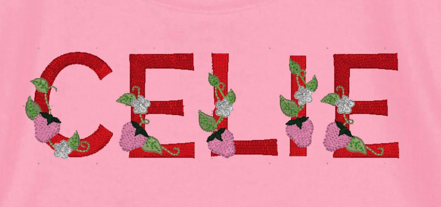 • Custom strawberry embroidery