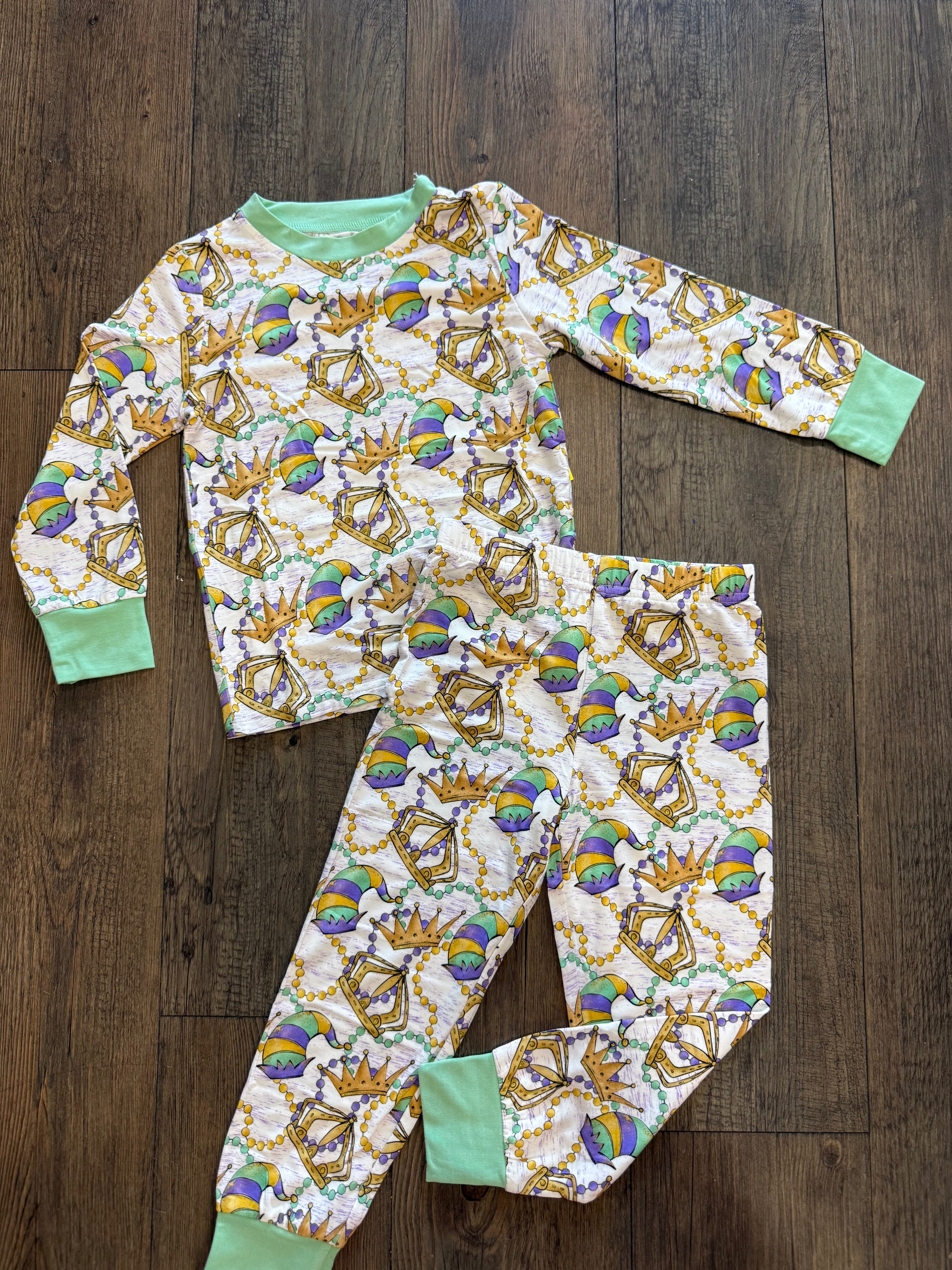 Step into bedtime with a touch of festive flair with the Mardi Gras Royal Kids Pajamas. Built for little dreamers who adore color and whimsy, this two-piece pajama set blends cozy comfort with a royal, celebratory vibe.